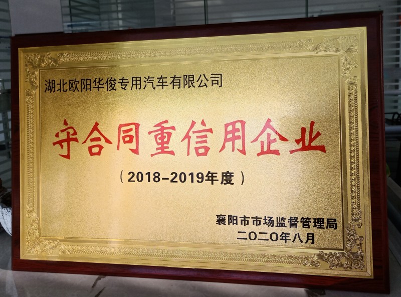 點(diǎn)贊!湖北歐陽華俊專用汽車有限公司榮獲“守合同重信用”企業(yè)稱號(hào) 2020-11-19